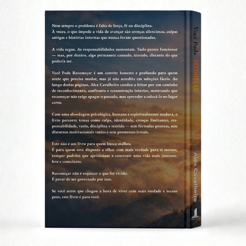 Em Você Pode Recomeçar, Alex Cavalheiro conduz o leitor por uma jornada íntima e honesta de reconhecimento, confronto e reconstrução interior. Sem fórmulas prontas, sem promessas motivacionais e sem atalhos emocionais, o livro propõe um caminho mais profundo: revisar crenças silenciosas, compreender culpas antigas, amadurecer a responsabilidade e reposicionar o passado sem precisar apagá-lo.